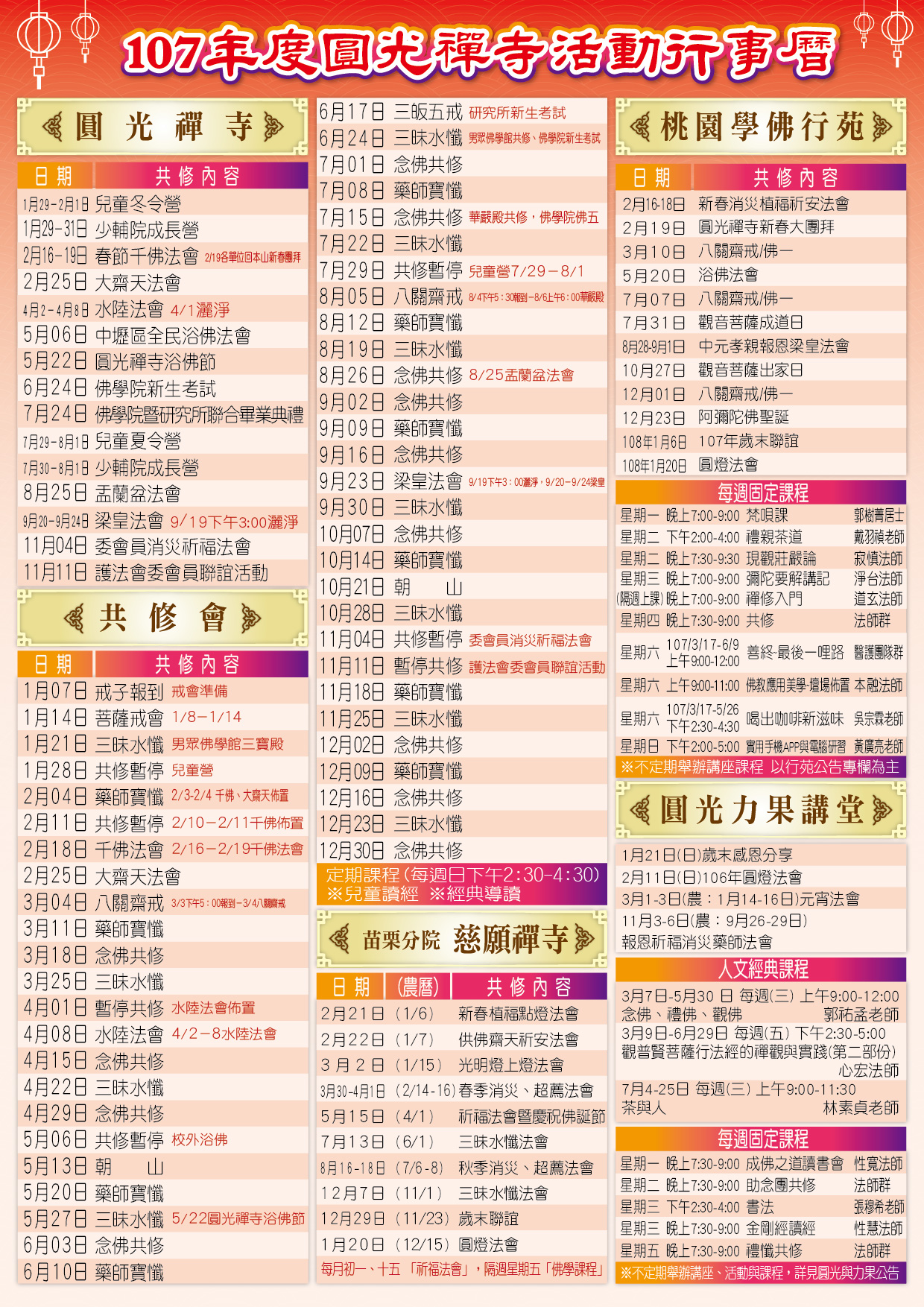 圓光禪寺-107年度活動行事曆